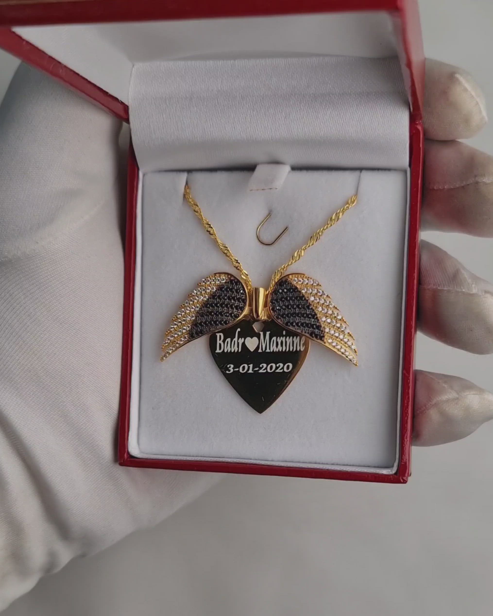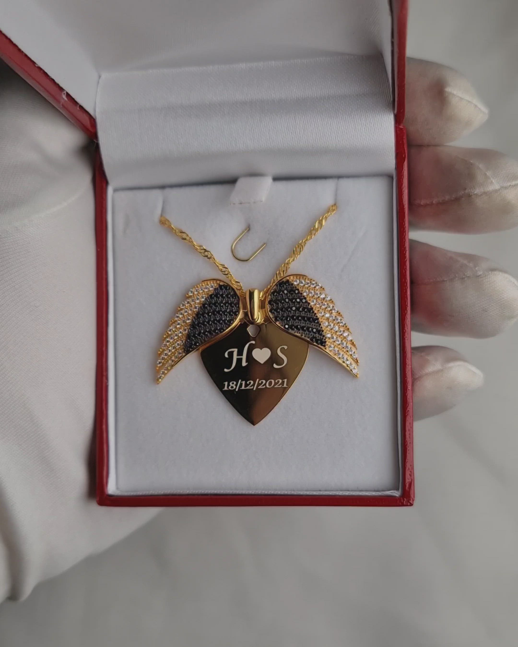قلادة أجنحة ملاك الحب المميزة مصنوعة يدويا من الفضة الاسترليني 925 المطلية بالذهب (الحجم الكبير)