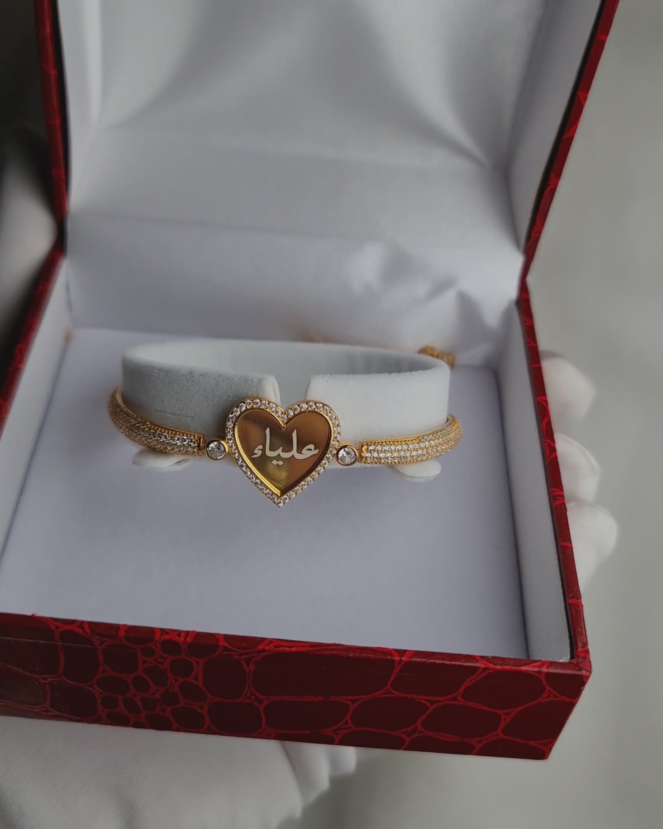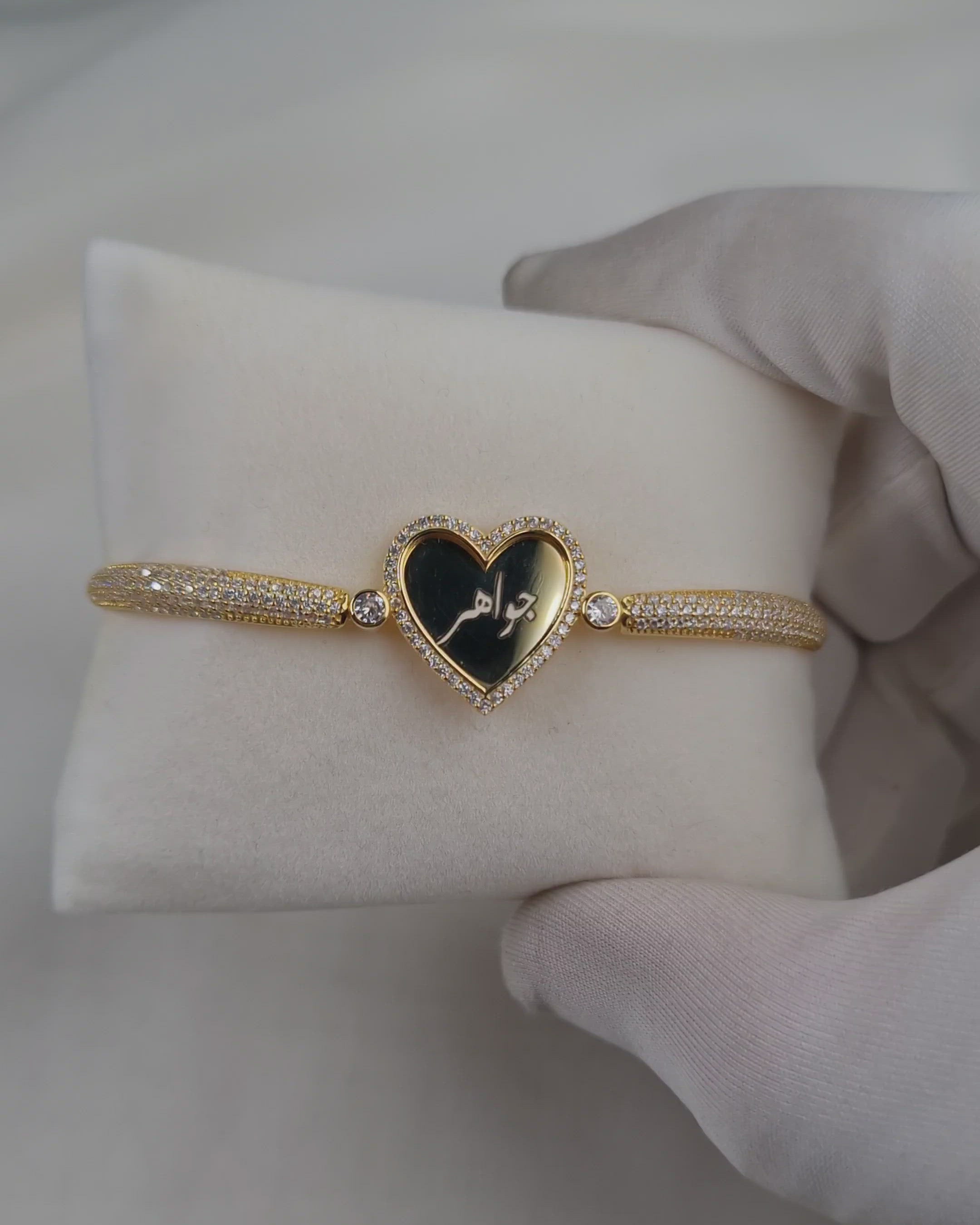 سوار من الفضة الإسترليني عيار 925 بتصميم قلب مخصص مع اسمك