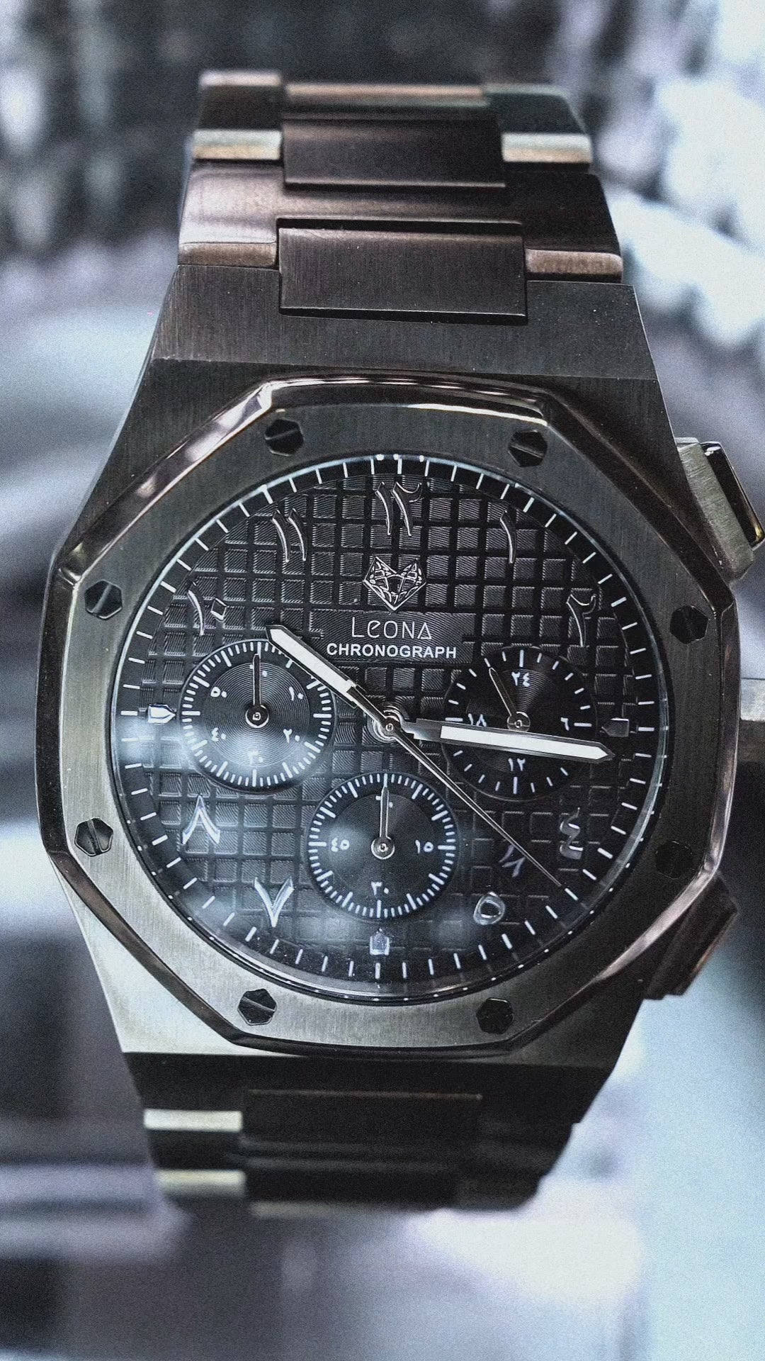 ساعة رويال كرونوغراف الإصدار الأسود ليست مجرد ساعة؛ إنها تعبير عن الذوق الرفيع. تُعدّ هذه الساعة، جزءًا من مجموعة ليونا الحصرية، وتتميز بهيكل مصنوع من الفولاذ المقاوم للصدأ عالي الجودة بلون معدني داكن، مما يُضفي تباينًا جريئًا مع المينا السوداء والأرقام العربية الفضية اللافتة.