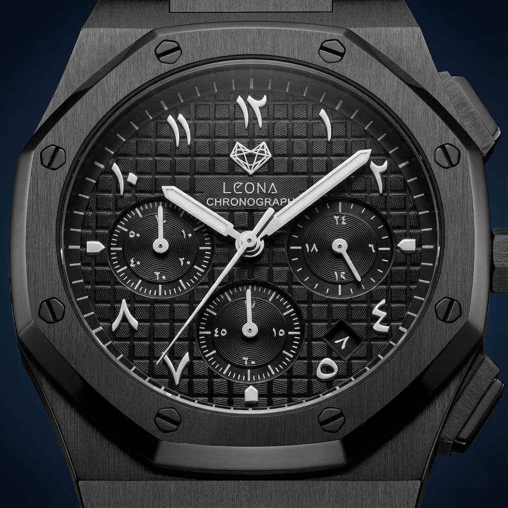 ساعة رويال كرونوغراف الإصدار الأسود ليست مجرد ساعة؛ إنها تعبير عن الذوق الرفيع. تُعدّ هذه الساعة، جزءًا من مجموعة ليونا الحصرية، وتتميز بهيكل مصنوع من الفولاذ المقاوم للصدأ عالي الجودة بلون معدني داكن، مما يُضفي تباينًا جريئًا مع المينا السوداء والأرقام العربية الذهبية اللافتة.