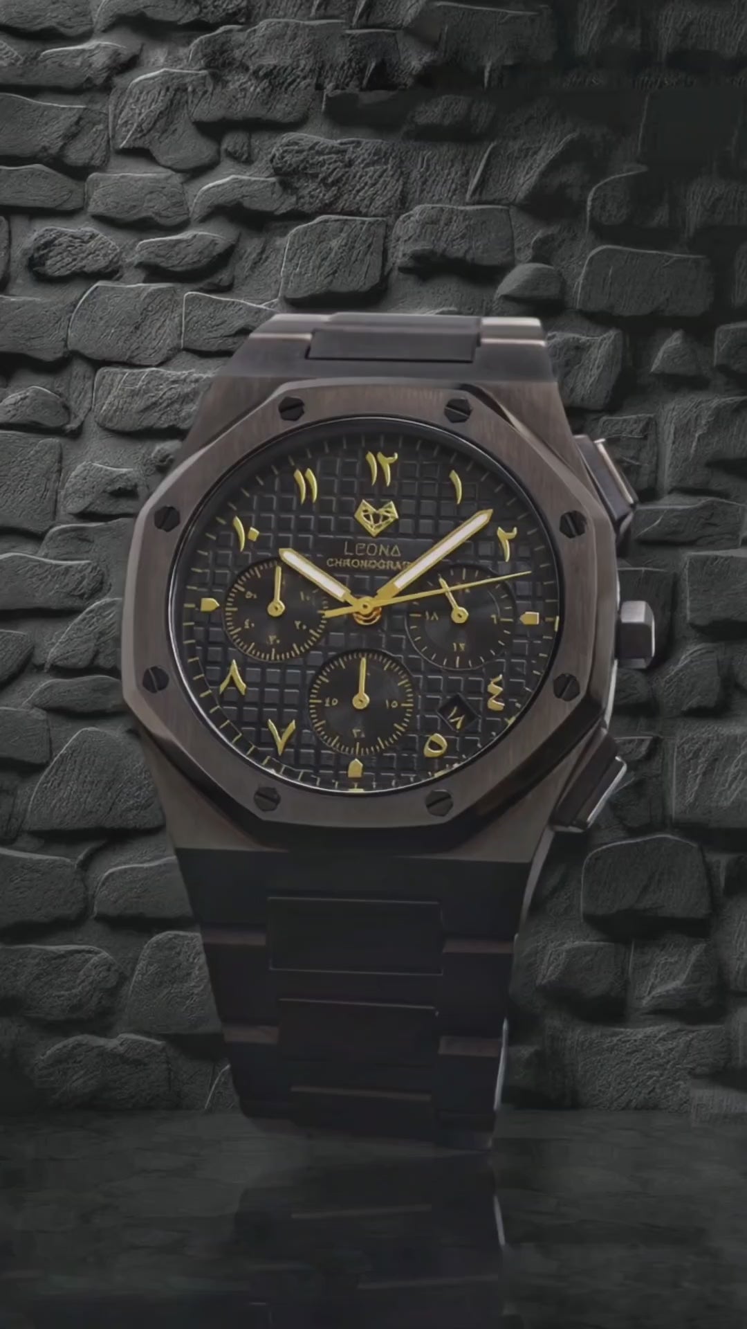 تعبير جريء عن الأناقة والفخامة. تخلق المينا باللون الأسود مع الأرقام العربية الذهبية تباين قوي، مما يمنح حضور مميز وراقي.