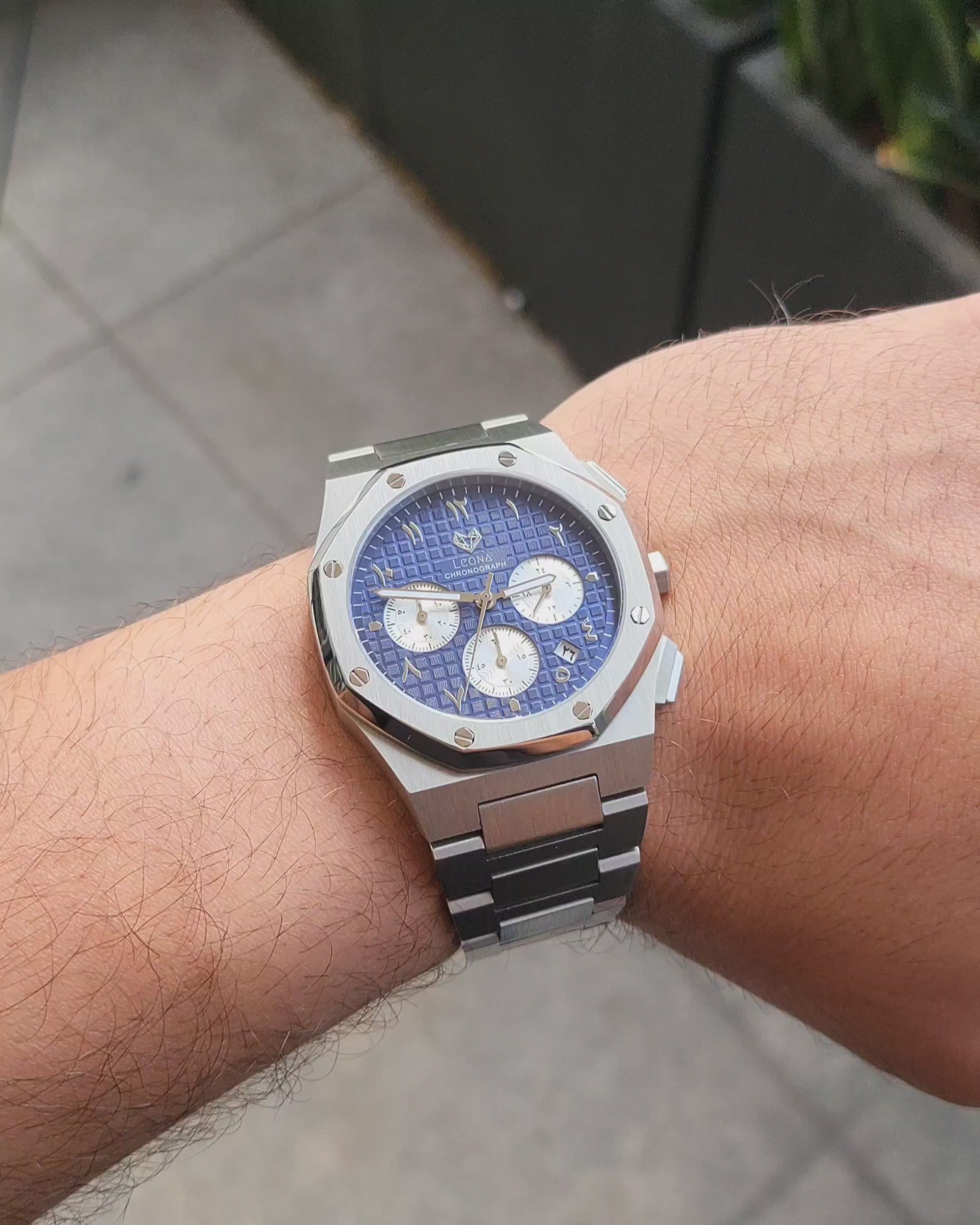تجسّد ساعة رويال كرونوغراف باللون الأزرق مزيجًا مثاليًا بين الدقة والفخامة، بتصميم عصري يليق بمن يقدّرون الحرفية العالية والتفاصيل المتقنة. تتميز بمينا أنيق باللون الأزرق مع عدادات فرعية فضية متباينة وأرقام عربية راقية، ما يمنحها حضورًا قويًا ولمسة كلاسيكية متجددة.