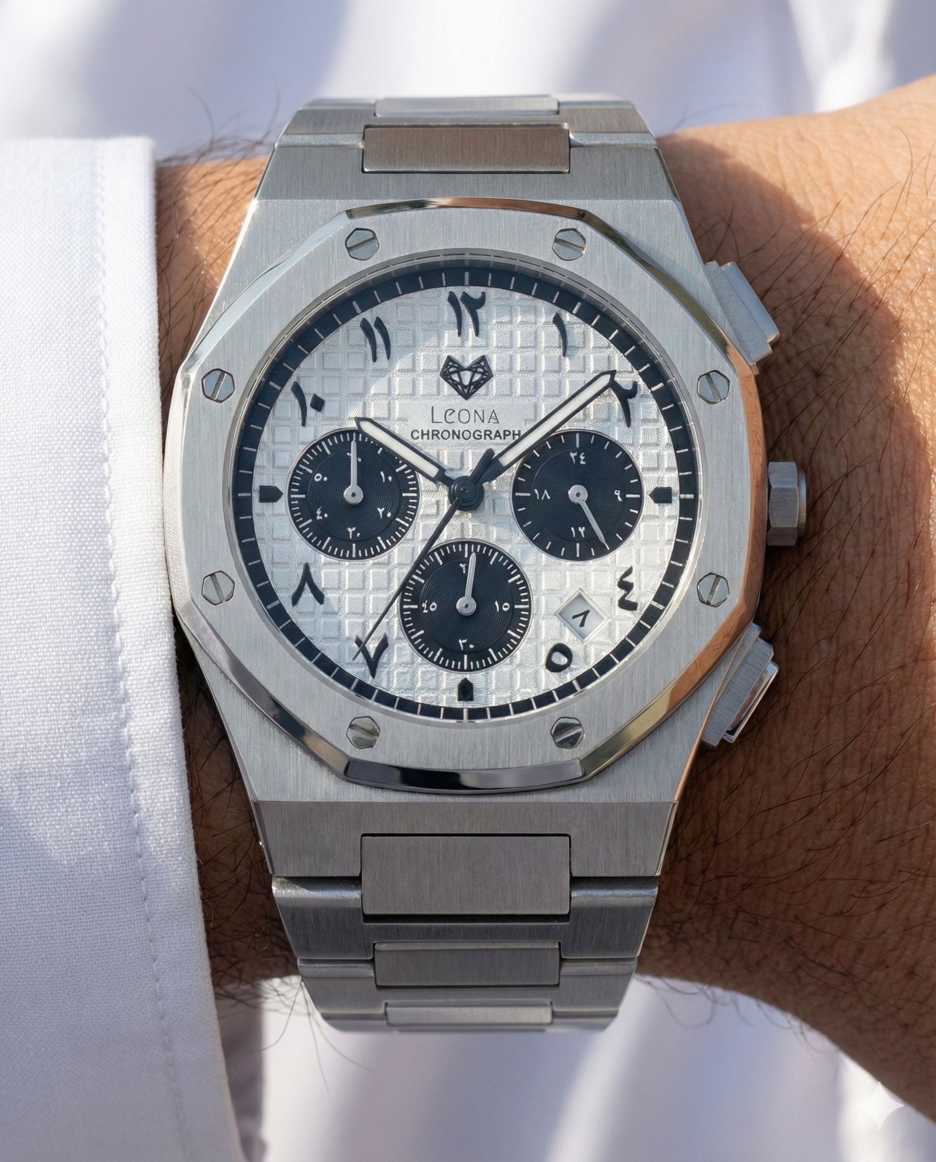 صُنعت من فولاذ فاخر 316L المقاوم للصدأ وتعمل بحركة كرونوغراف يابانية دقيقة من سيكو VD53، لتضمن أداءً موثوقًا يدوم لسنوات. كما توفر وظيفة الكرونوغراف دقة عملية في الاستخدام، في حين يحميها زجاج مقاوم للخدش والصدمات ليحافظ على أناقتها في مختلف الظروف.