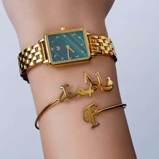 925 Silver Personalized Custom Handmade Name Bracelet With Green Stone