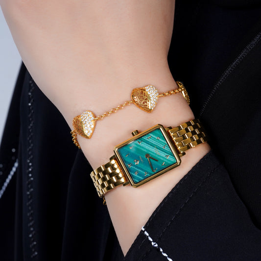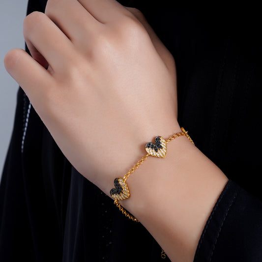 925 Silver Dainty Four Hearts Bracelet (Gold)