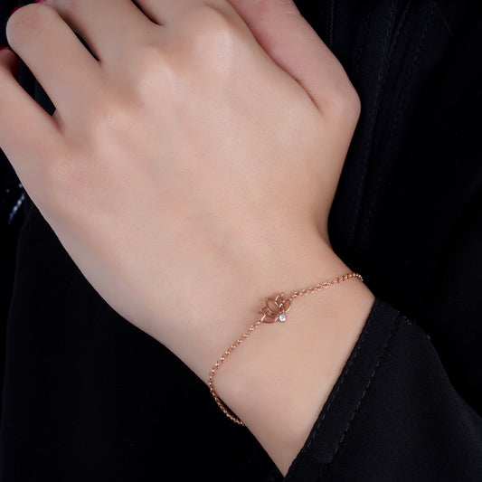 925 Silver Dainty Lotus Bracelet (Rose gold)