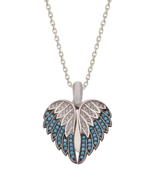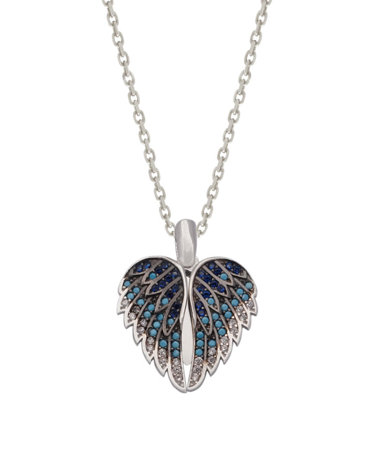 925 Silver Personalized Custom Angel Wings Name Necklace (Blue Stones)
