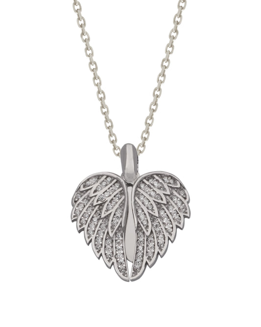 925 Silver Personalized Custom Angel Wings Name Necklace (White Stones)