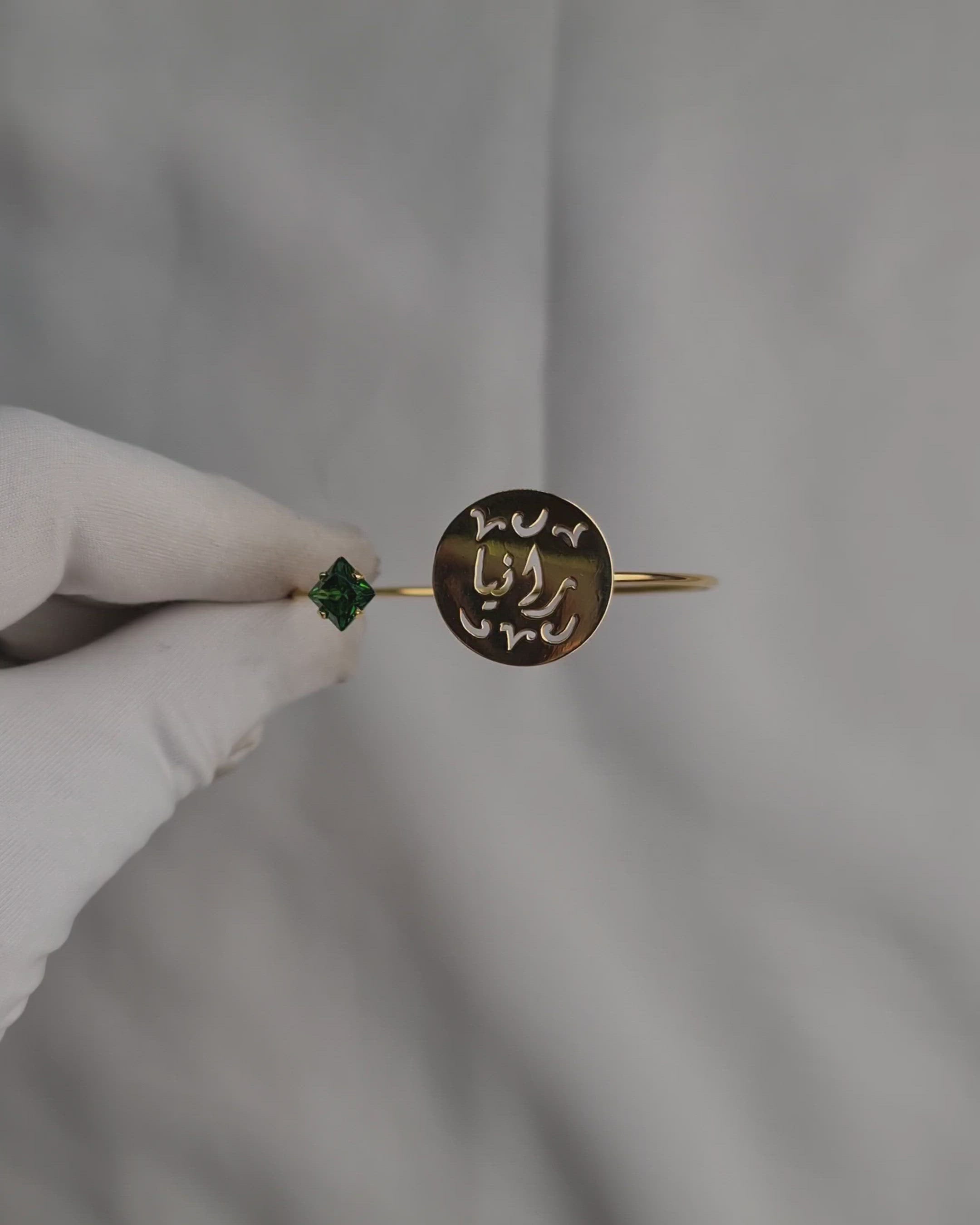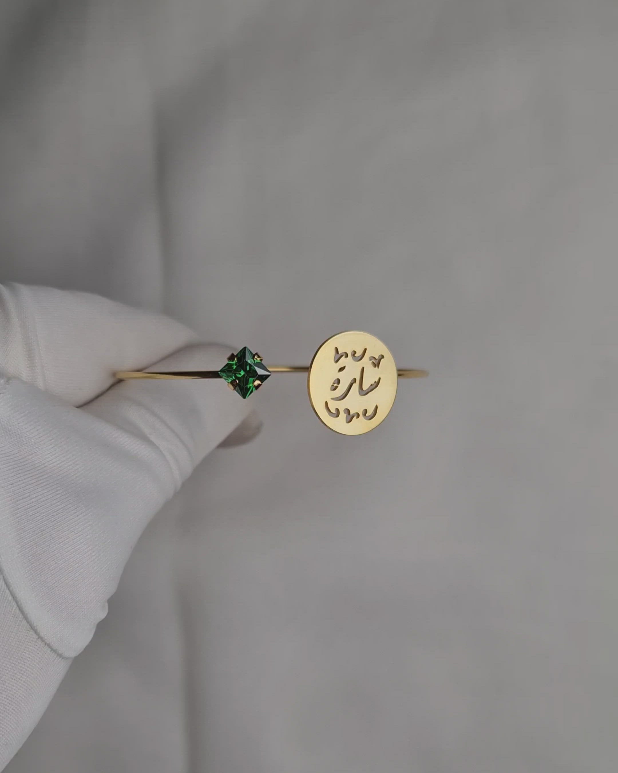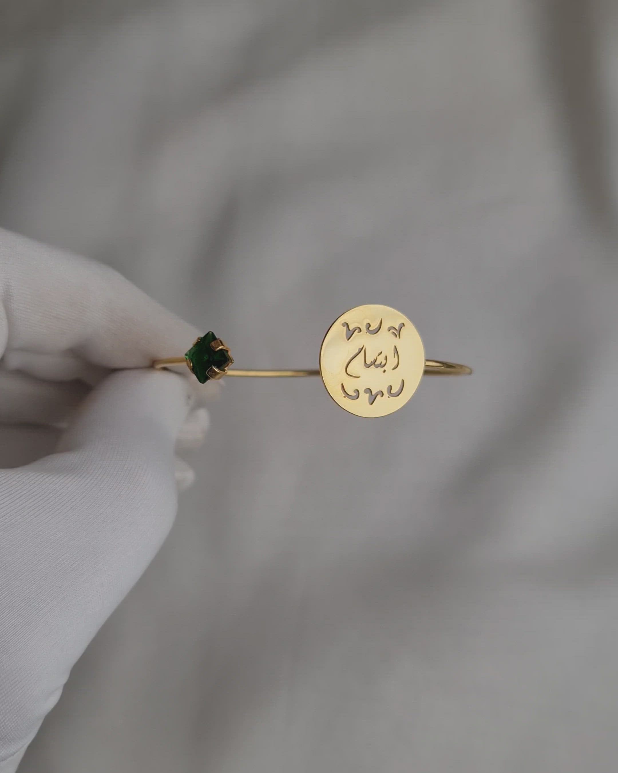 925 Silver Personalized Custom Handmade Name Bracelet With Green Stone