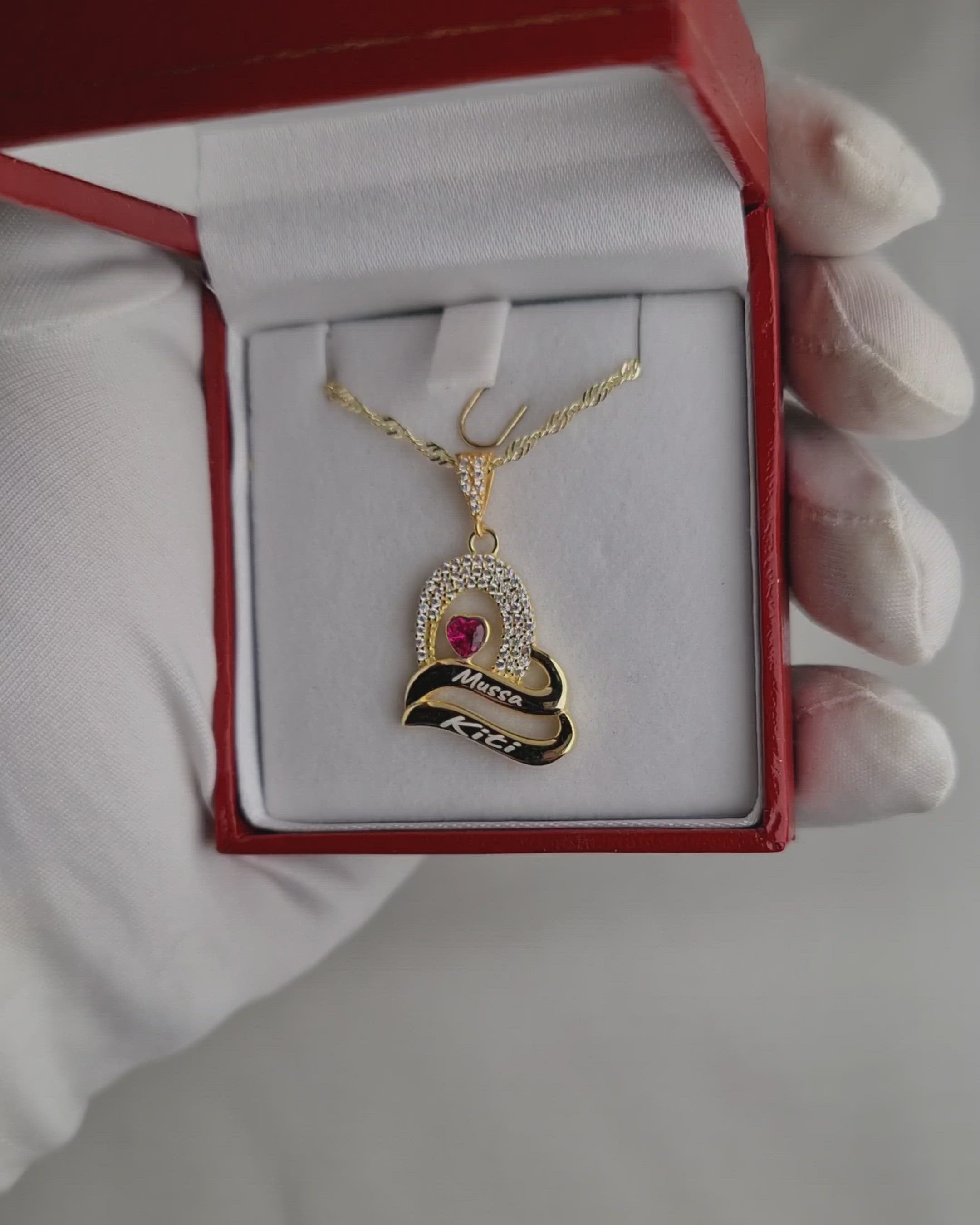 925 Silver Personalized Custom Double Heart Couple Name Necklace