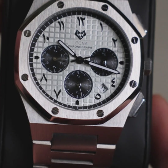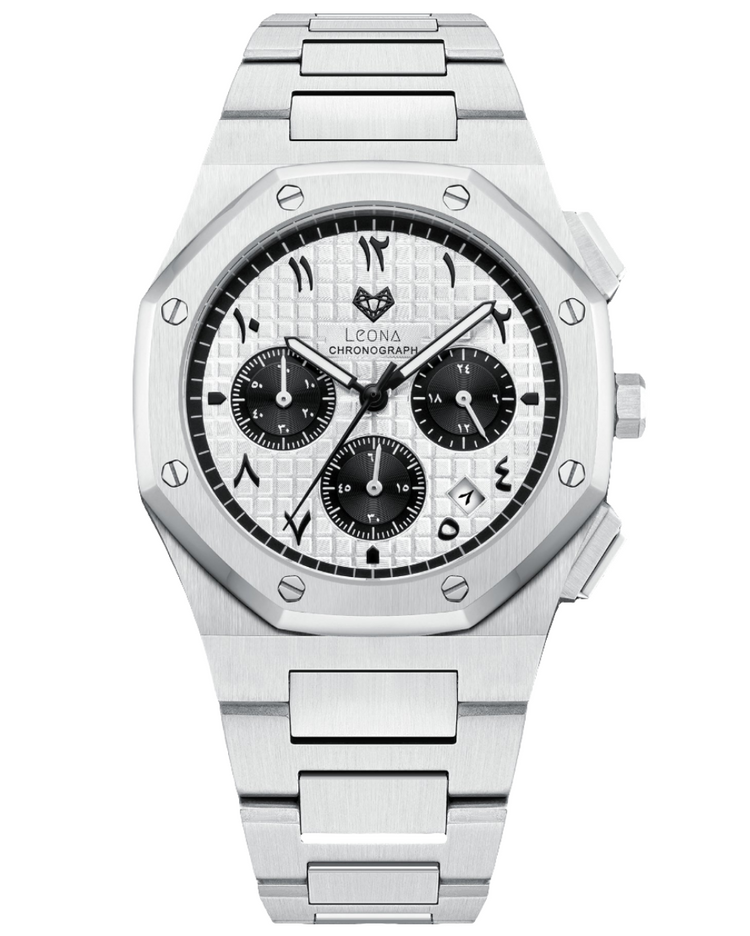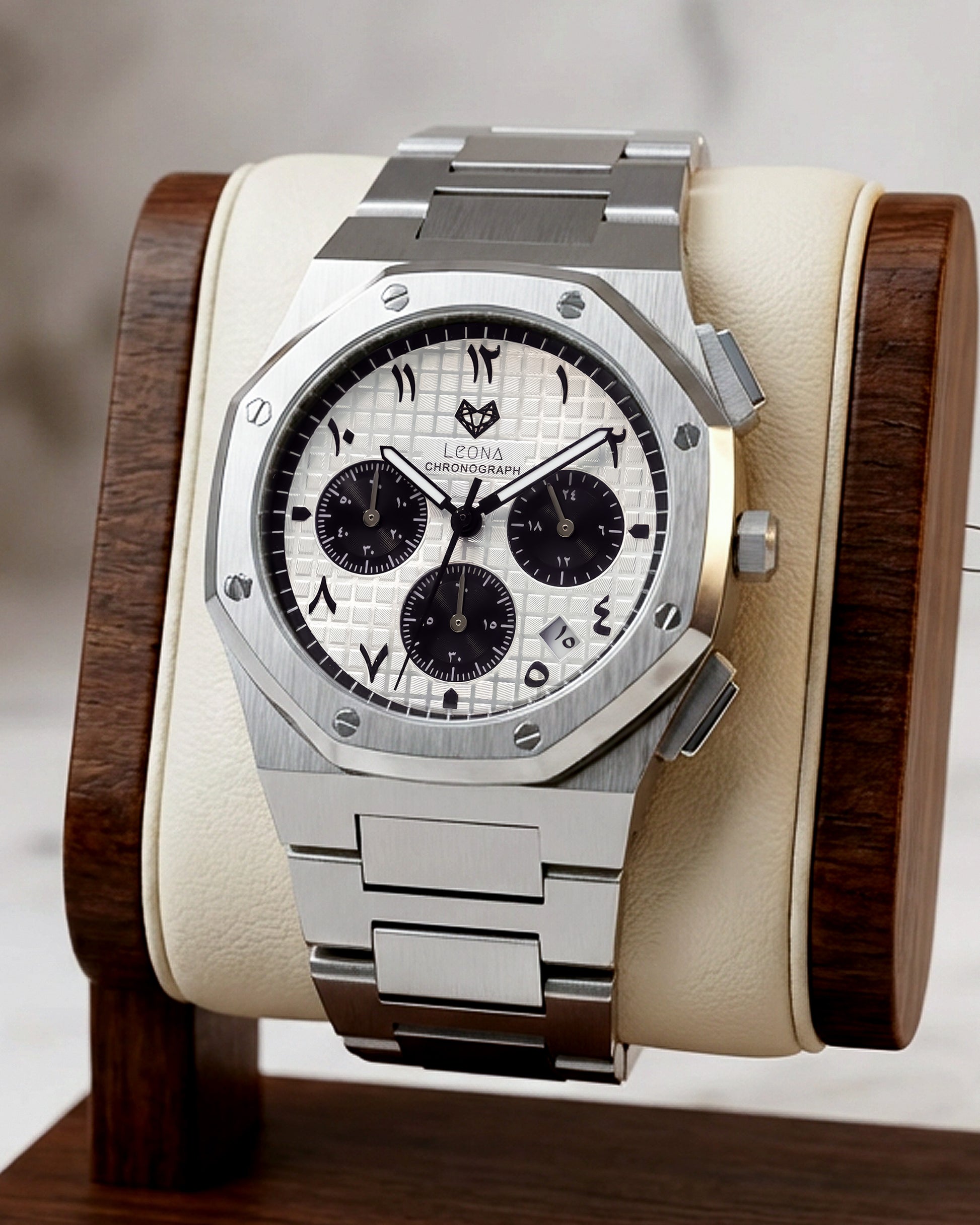 A bold statement of elegance and precision, the Royal Chronograph Panda is designed for those who appreciate refined craftsmanship with a modern edge. Featuring a crisp panda-style dial with contrasting black sub-dials and Arabic numerals, this timepiece captures attention with a sleek, balanced design.