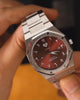 Protected by scratch-resistant, shatterproof glass, and rated for 50 meters water resistance, the Royal Burgundy Red is ready for everyday wear, from formal events to casual outings.