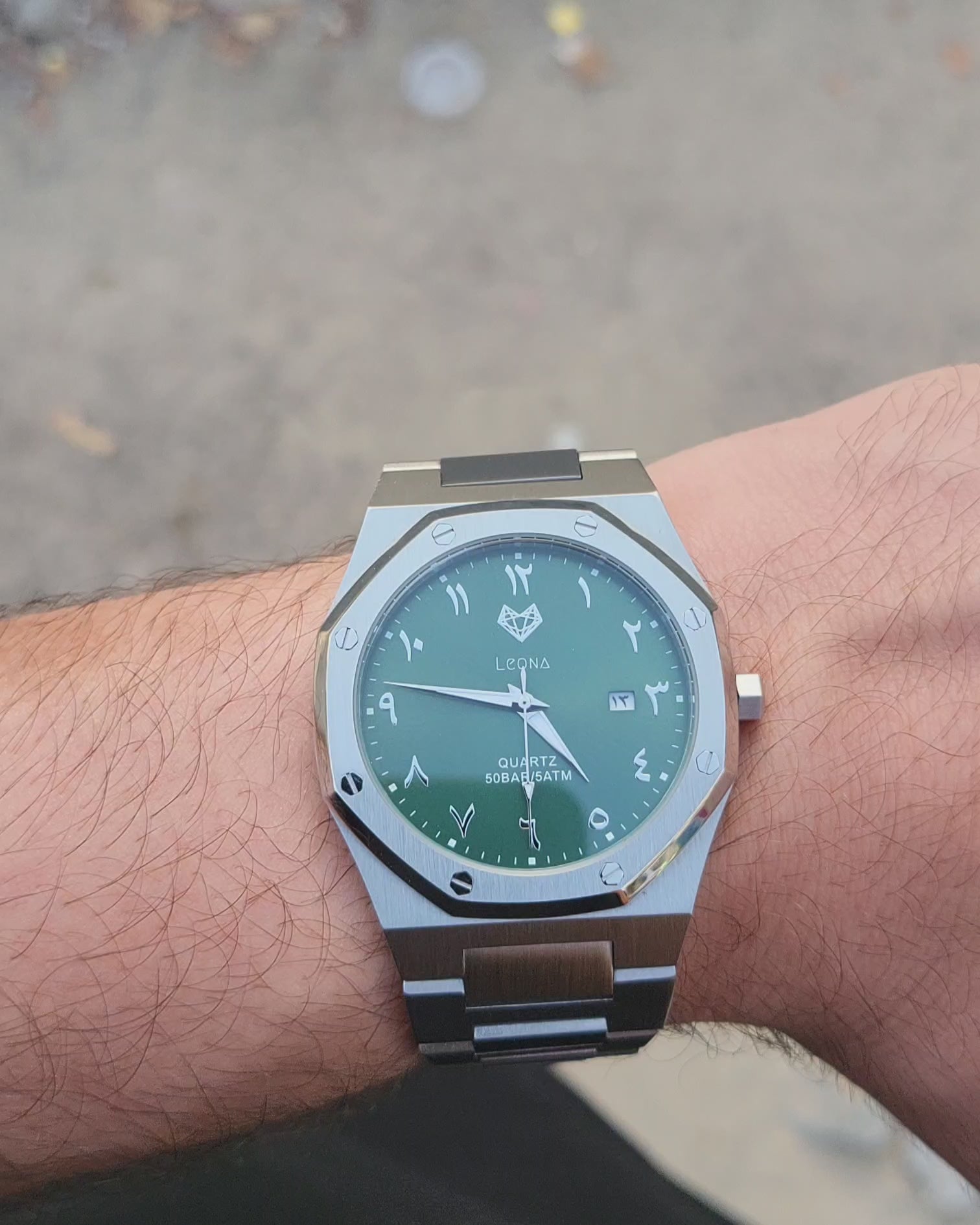 Experience luxury and precision with the Royal Watch Green. Its captivating green dial and Arabic numerals exude elegance and timeless sophistication.
